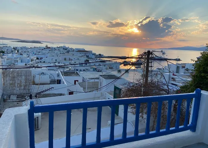 Elenitas Town House With Veranda And Sea View Mykonos Town heeft uitzicht over de zee en ligt op een paar stappen verwijderd van het Archeologisch museum van Mykonos. Het Agios Stefanos-strand bevindt zich binnen 2 km van het appartement van 40 m², terwijl Klooster van Paleókastro op 15 minuten rijden verderop is.